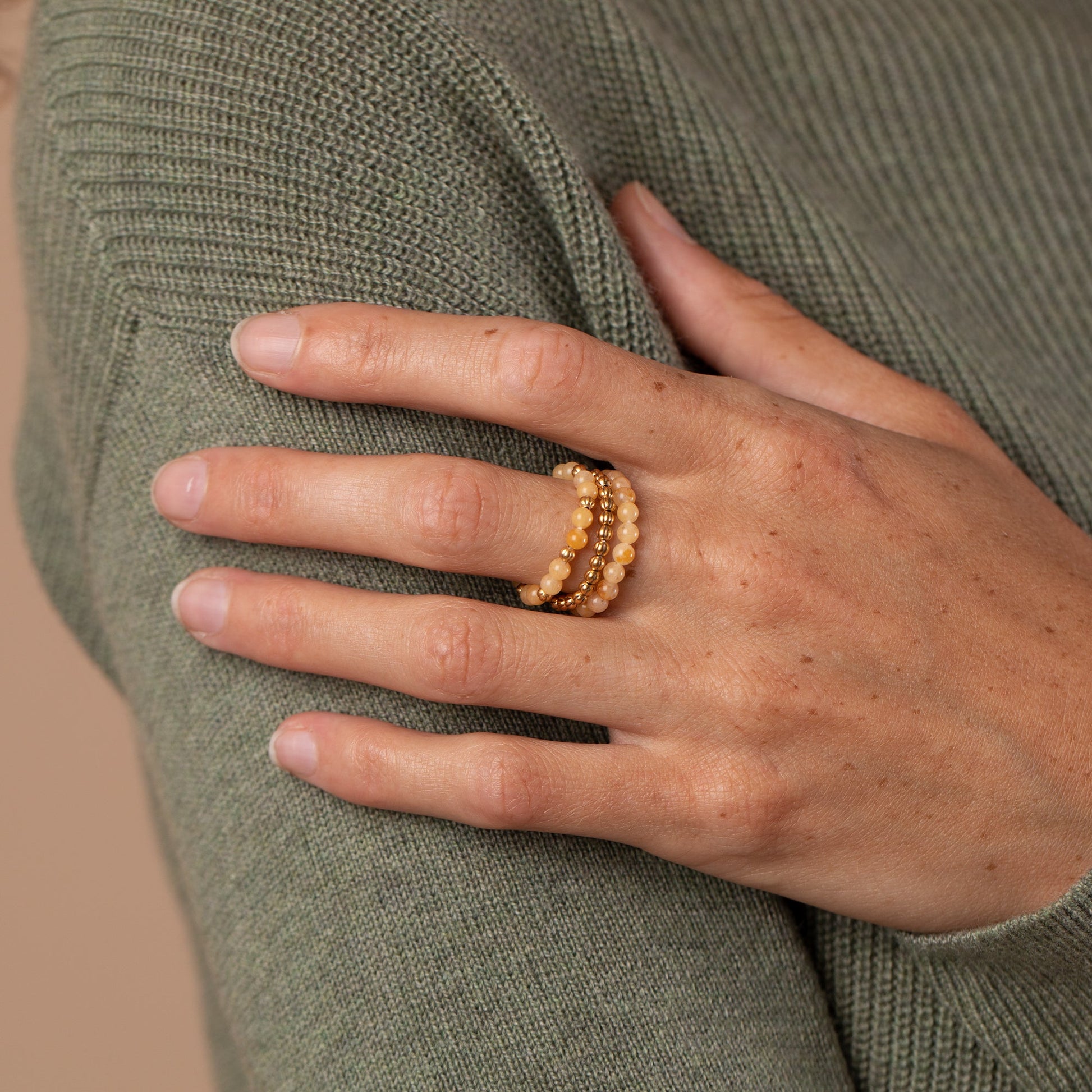 Yellow Jasper Gemstone Stretch Rings, Set of 3